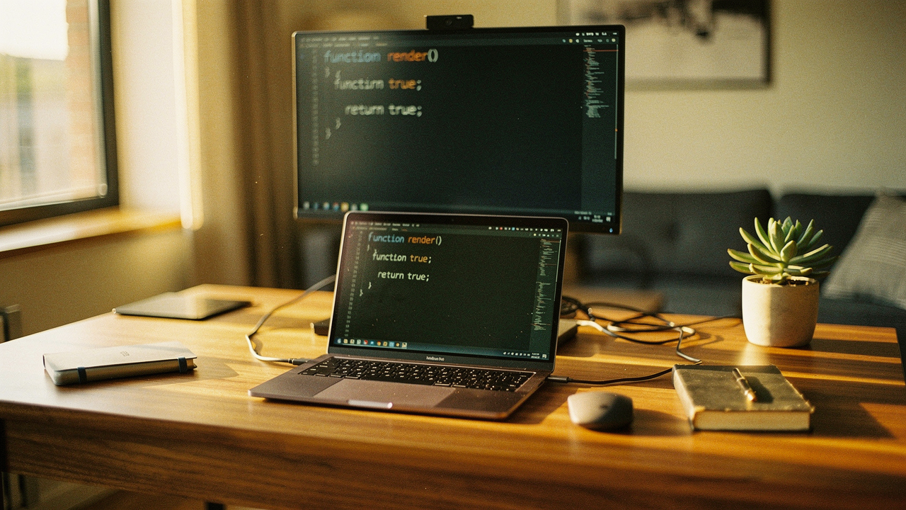 The magic of a stacked setup is verticality. By placing the second screen directly above your laptop, your gaze moves up and down rather than side-to-side. Here is the thing: your neck is far better at slight vertical adjustments than horizontal ones. According to ergonomic best practices, the top of your primary (lower) monitor should be at or slightly below eye level, while the upper monitor should be tilted downward approximately 15 to 30 degrees [3].